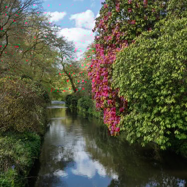 After exploring the mill, Linda and I headed into the gardens—and honestly, they’re worth the trip all on their own. The terraced gardens spill down the hillside in layers of colour, and the River Bollin winds gently through the estate like something out of a painting.